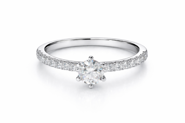 Ez a gyémántgyűrű a klasszikus ragyogást ötvözi a modern, etikus ékszerkészítés szemléletével. Letisztult vonalvezetése és gondosan megmunkált foglalata kiemeli a központi követ, miközben kényelmes viseletet biztosít a mindennapokban is.